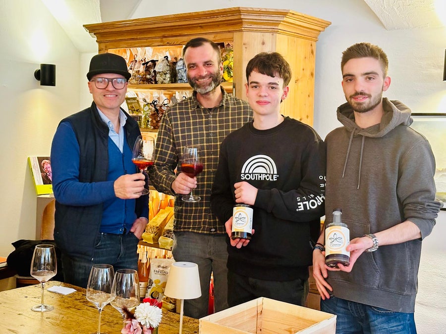 Zwei Schüler der 5B Önogastronomie des BBZ "Emma Hellenstainer" in Brixen haben im Rahmen ihres Maturaprojekts den "Canavino" entwickelt. "Wir wollten einerseits die unbekannte Vielfältigkeit des Wermuts und andererseits das trendige Thema 'CBD' nutzen, um daraus ein innovatives Produkt zu kreieren", so Fabian und Michael beim Verkostungsevent am 24. April im Weingut Peter Sölva in Kaltern.