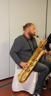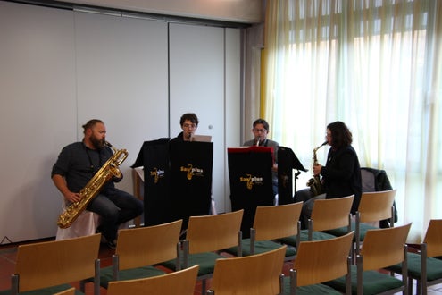 Teil, der vom Ensemble Saxplus schwungvoll musikalisch umrahmt wurde, lud Direktor Flora zu einem