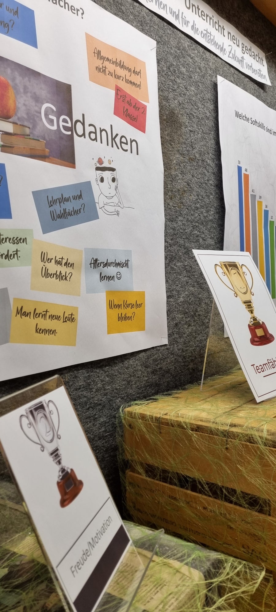Die Ergebnisse der Workshops wurden kürzlich in Schaukästen der Schule ausgestellt. Initiator des Projekts war EDV-Fachlehrer Joachim Zössmayr, der sich über die Ideen und Gedanken der Schüler*innen sehr erfreut zeigte.