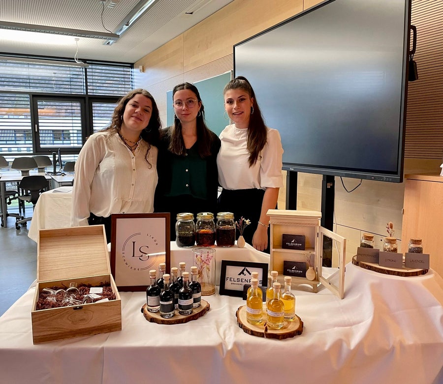 Wir Maturantinnen des BBZ "Emma Hellenstainer", Anna Gufler, Alina Schwarz und Nadine Strobl von der 5B Önogastronomie, sind das Team LikörSchmiede. Gemeinsam haben wir es uns zur Mission gemacht, unseren eigenen Likör herzustellen. Durch die tatkräftige Unterstützung unseres externen Partners, der Brennerei Felsenriss in Völlan, wurde es möglich unser Projekt zu verwirklichen. Insgesamt haben wir 20 Versuche gemacht, bis wir uns schließlich für die Geschmackskombination Blaubeer-Lavendel entschieden haben. Diese haben wir mit Kirschbrand, etwas Rum und einem Hauch von Zitronengras ergänzt. Den fertigen Likör haben wir abgefüllt und mit unseren selbst designten Etiketten veredelt. Bei unserem Maturaball am 20.04.2024 haben wir den finalen Likör endlich unseren geladenen Gästen präsentiert und zur Verkostung angeboten. Bei der abschließender Umfrage erhielt er 3 von 4 Sternen!
